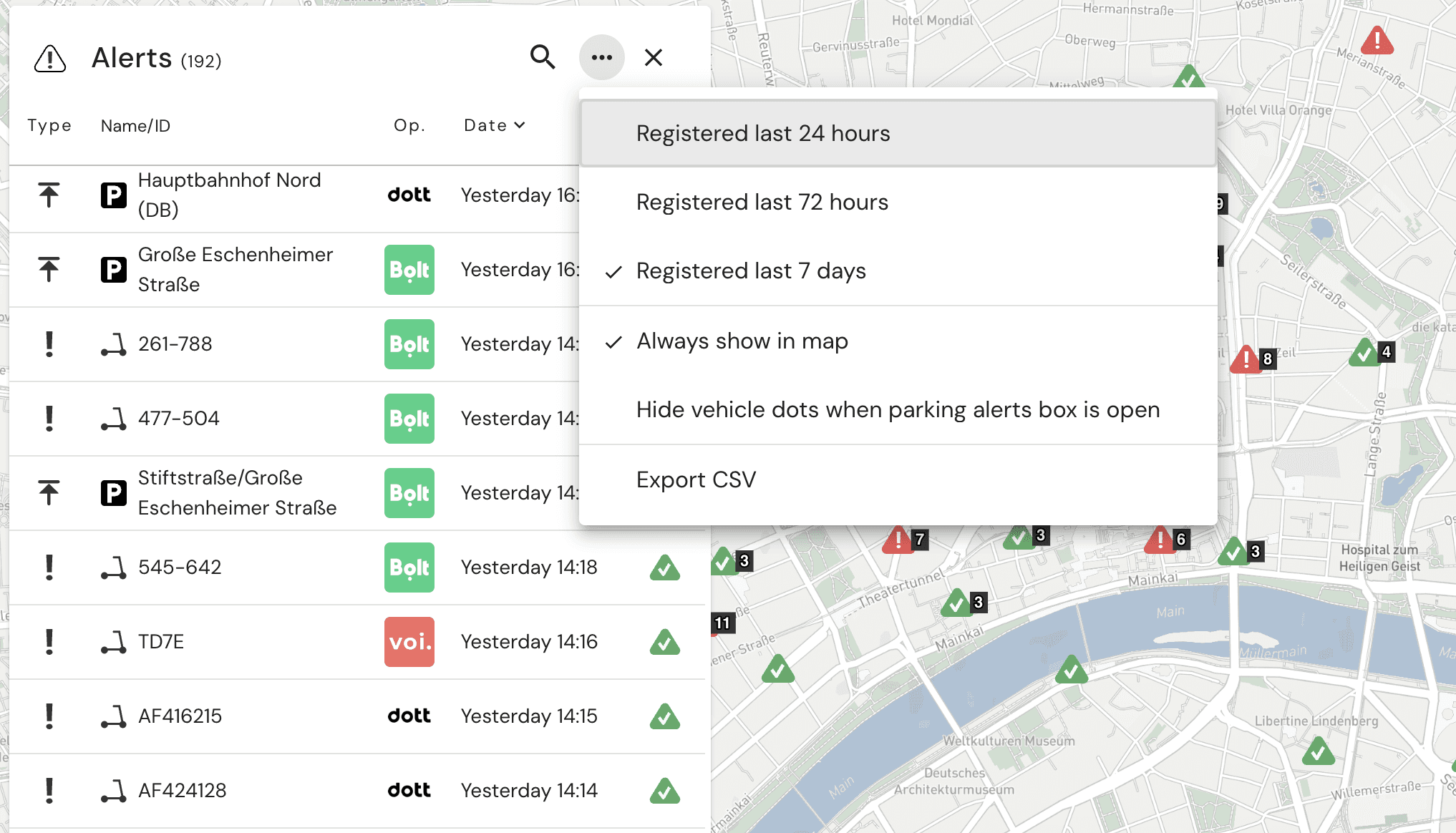 These alerts will be automatically resolved when vehicles are being removed, either by operators removing them or by users going on new trips.